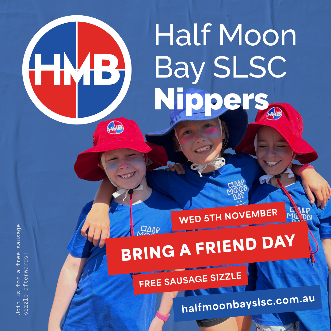 Hey Nippers and friends! It's time to double the fun on the 8th of November, it's bring a friend day! Come and have a free trial session with a friend to experience our awesome sport and club first-hand, and join us for a free sausage on the balcony after training. Get ready for some fun on the beach!